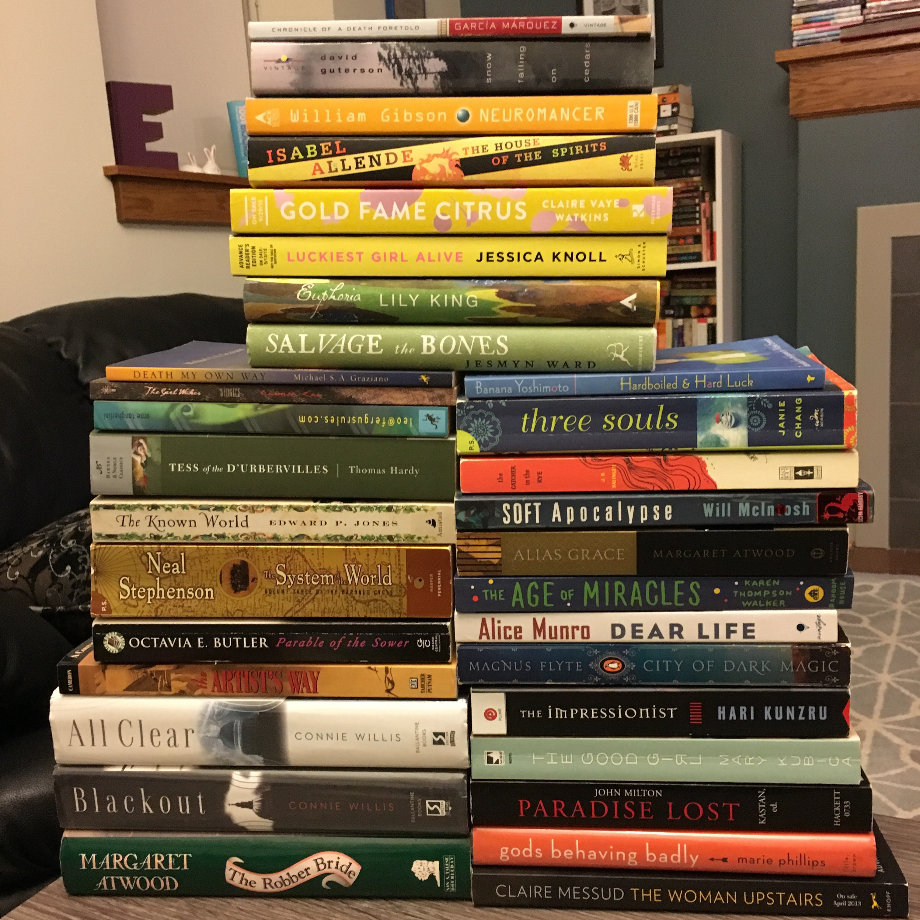 And here are all the books! A bunch aren’t in the picture I took because I had to return them to the library, plus there were the audio/eboks.