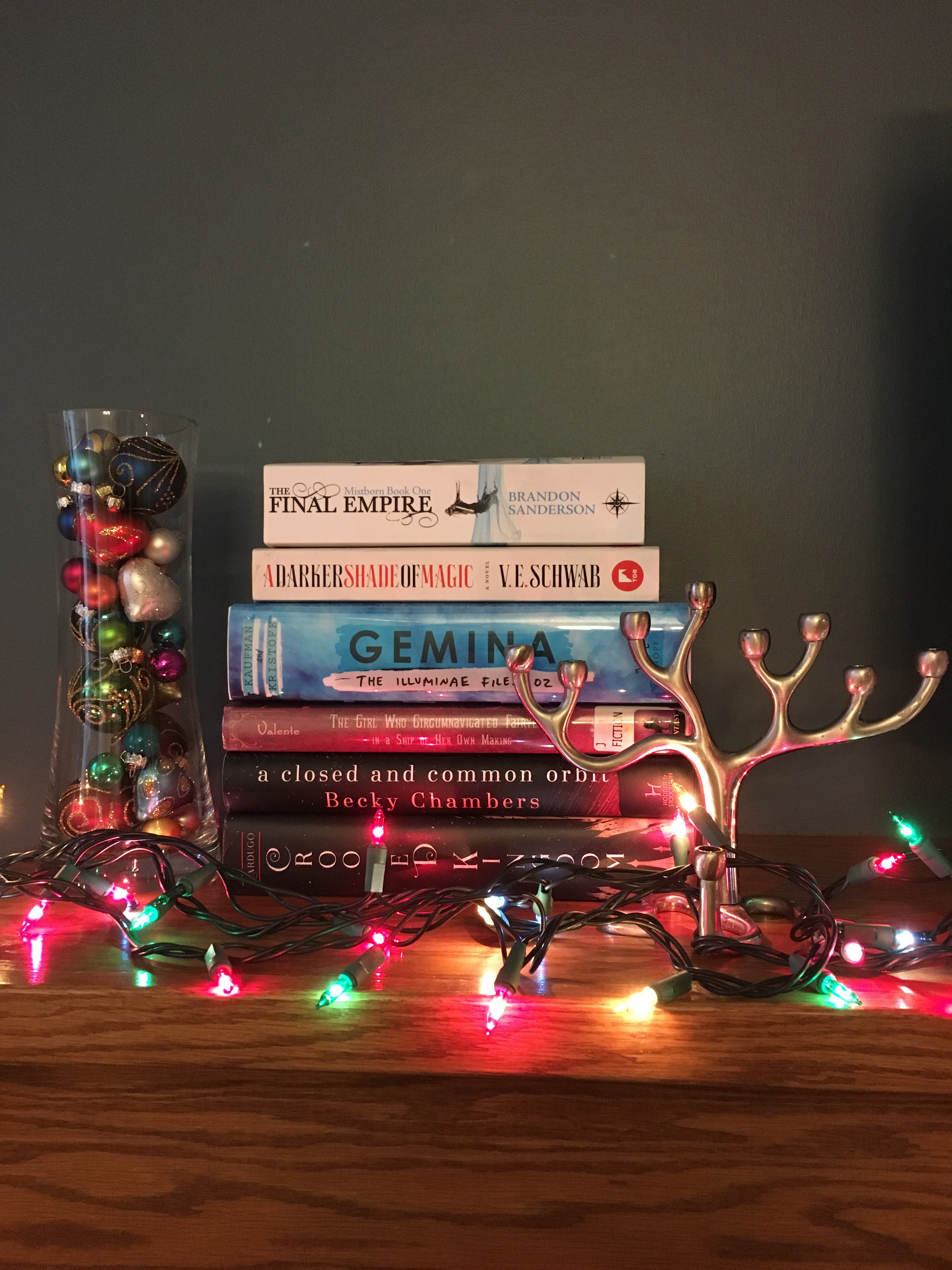 I’m a little early with this December reading recap, but I’ll be out of town for New Years’ and am trying to get a jump on my blog posting before I leave. In December, I managed to read three of the four books from my Tome Topple Readathon TBR list (which I totally failed at reading in November) and also read a bunch of very popular books, with varied results. There are technically three days left in December, but it doesn’t look like I’ll be able to finish another book before then–I’m right at the beginning of The Bone Clocks by David Mitchell, which is a very long book, and I’m listening to Lab Girl by Hope Jahren very, very slowly. I’m also re-reading Sarah J. Maas’s A Court of Mist and Fury, which is a very wintery read.