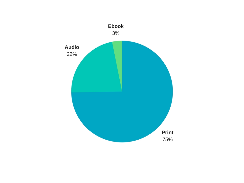 Books by format: Print books (75%) still comprise the vast majority of my reading, although I definitely added a lot to my reading totals by getting into audiobooks.