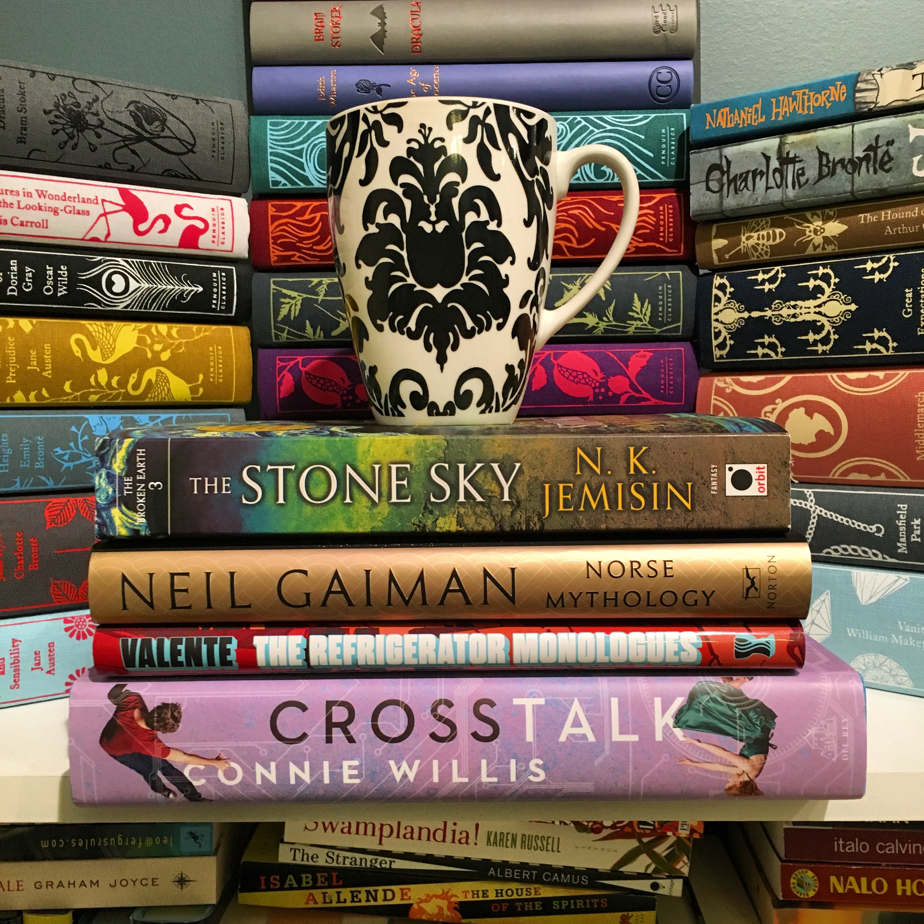 When did I acquire the books I read? March 2017 (Crosstalk), June 2017 (Norse Mythology), August 2017 (The Stone Sky), November 2017 (The Refrigerator Monologues)