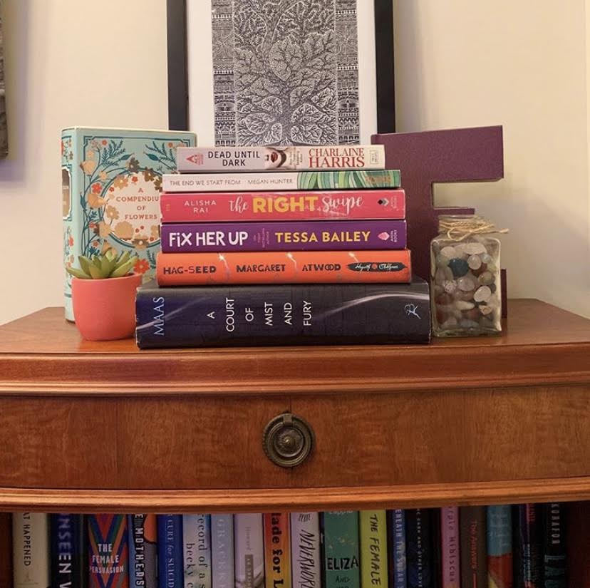 Next, I turned to one of my favorite book series, which I was first introduced to back in college: Charlaine Harris’s Sookie Stackhouse/Southern Vampire Mysteries series. Unlike ACOTAR, it’s been many years since I’ve picked one of these books up, and they’re just as fun, funny, and addicting as I’d remembered. I love all of Harris’s little character details, and the Bill/Eric/Alcide love square situation is quite a fun one.