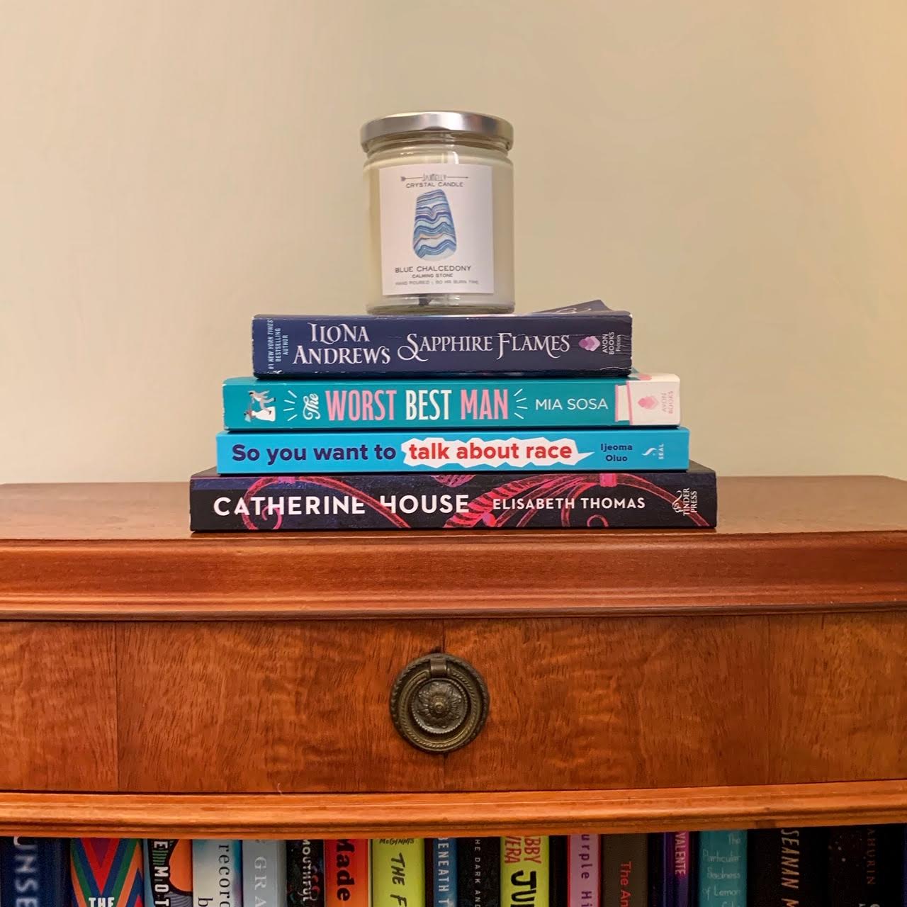 Sapphire Flames by Ilona Andrews (re-read) (4.5 stars) – I wanted to re-read Sapphire Flames, one of my favorite books of last year, in preparation for the release of its sequel, Emerald Blaze, next month, and definitely held up. Sapphire Flames is technically the fourth book in Andrews’ Hidden Legacy series, although it’s also technically the start of a new trilogy featuring the younger sister of books 1-3’s protagonist. I’ve actually just finished this one and LOVED it; I’m an Ilona Andrews superfan, but this was one of my favorites of hers. It’s set in a version of our world that features warring dynasties of magical families, and our main character Catalina has a very unique power; we follow her trying to solve a friend’s mother’s murder, protect her own family, and maybe connect with her crush, Alessandro, who has more than a few secrets up his sleeves. Honestly, this book is SO GOOD, and I think it’s also a great starting point for readers new to Ilona Andrews.