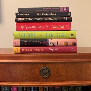 Thin Girls by Diana Clarke (4 stars) – I picked this one up because of a recommendation from Roxane Gay, who mentored the author, and I’m not sorry I did. Emotionally, it’s a very difficult read, and I would urge caution if you’re at all sensitive to reading about eating disorders; the main character is severely anorexic and is undergoing treatment throughout the book. I struggled through the first half, in which we become immersed in life at the inpatient eating disorder clinic our main character has been living at for a year, and gradually learn more and more about hers and her twin sisters’ past, particularly in regard to their relationships with food. The story picked up a lot for me in the second half, though, and I found the ending to be extremely satisfying, which lead me to significantly bump up my rating. I’d be interested to see what Clarke writes next.