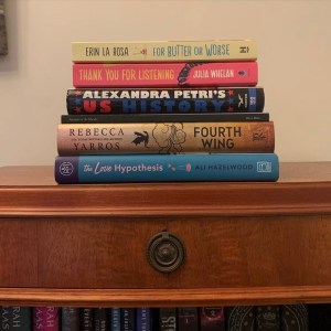 Funny Story by Emily Henry (anticipated release 4/23): OK, here’s the thing–I HATED Henry’s most recent release, Happy Place, but I also loved her three previous adult contemporary romances and one of her YA titles. So she’s still going on the list, even if I feel a bit more wary than I did this time last year.