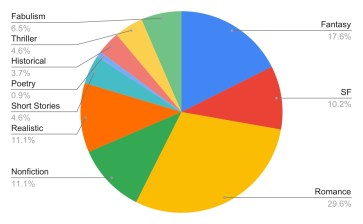 Also, just a fun fact: 21/49, or 43%, of my reads were from new-to-me authors; this is another new stat I’m tracking.