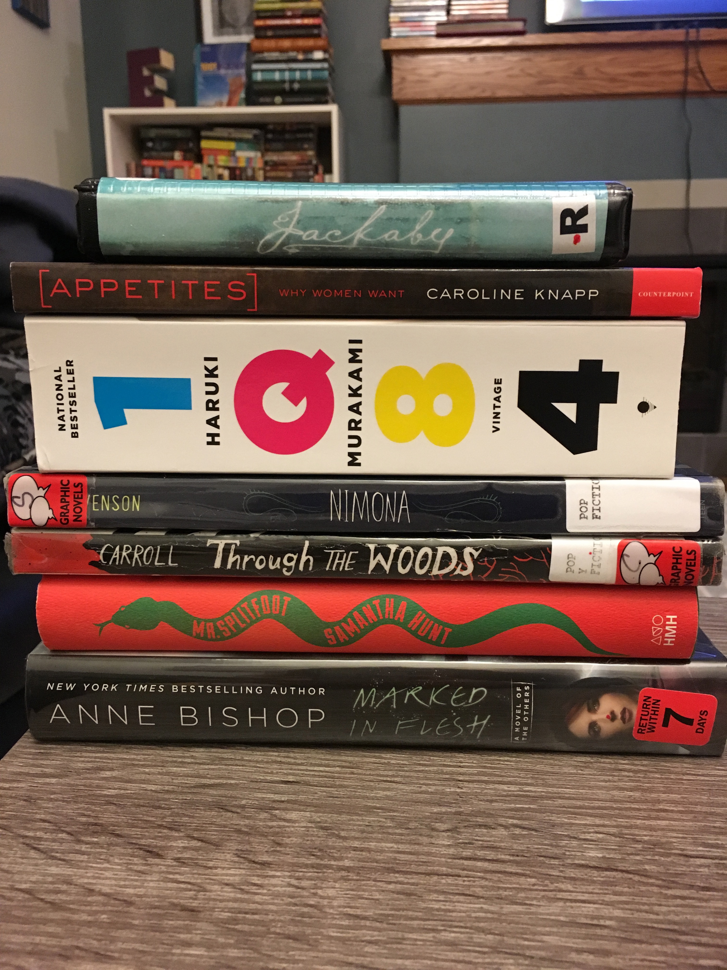 Through the Woods by Emily Carroll – another graphic novel, this one is supposed to be quite spooky. I read a really positive review on Goodreads from Patrick Rothfuss that made me check this out from the library.